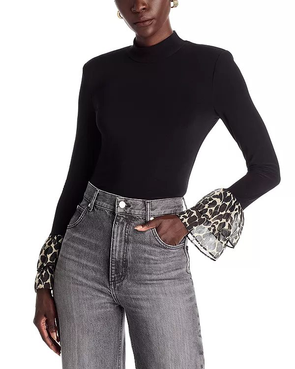 Длинные рукава, манжеты с принтом и многослойными оборками
