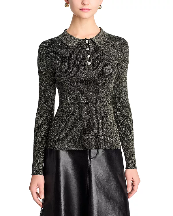 Свитер с воротником-поло T Tahari, черный