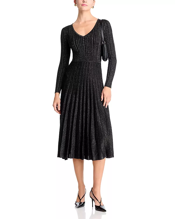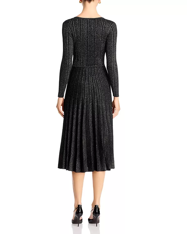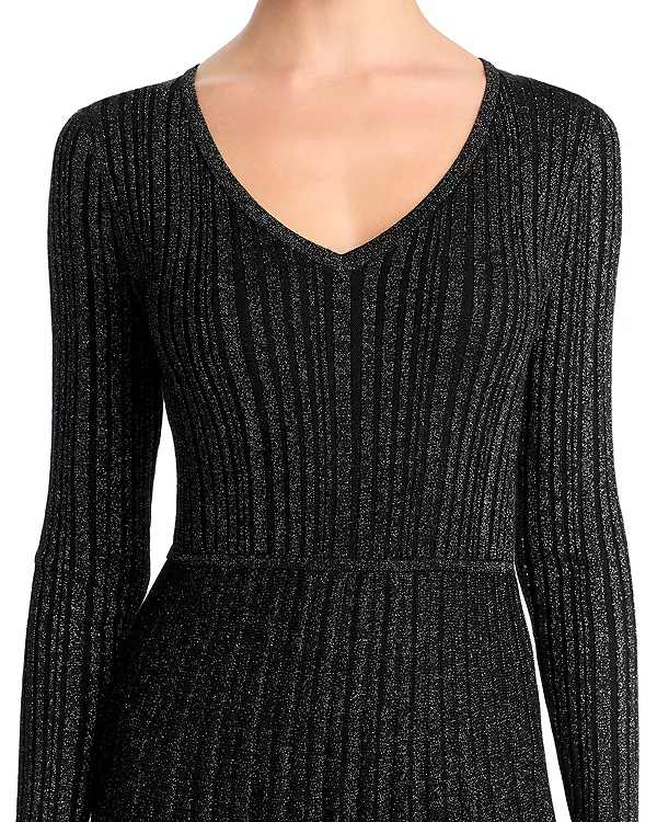 Платье-Свитер в рубчик с металлизированной нитью T Tahari, черный