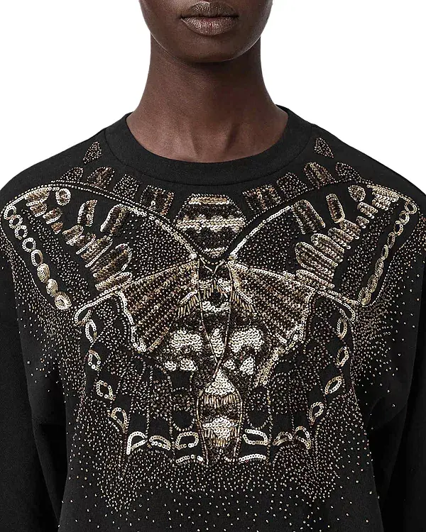 Рисунок бабочек, украшенный бусинами и пайетками спереди