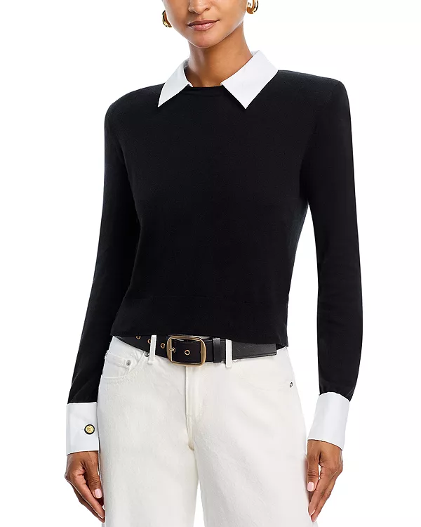Пуловер с воротником из поплина, апрель L'Agence, черный 47 099₽