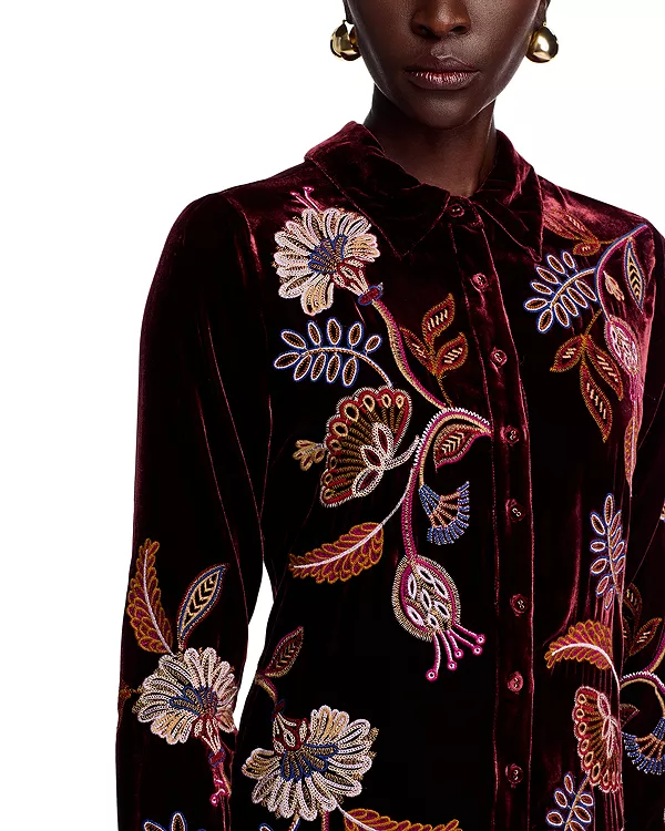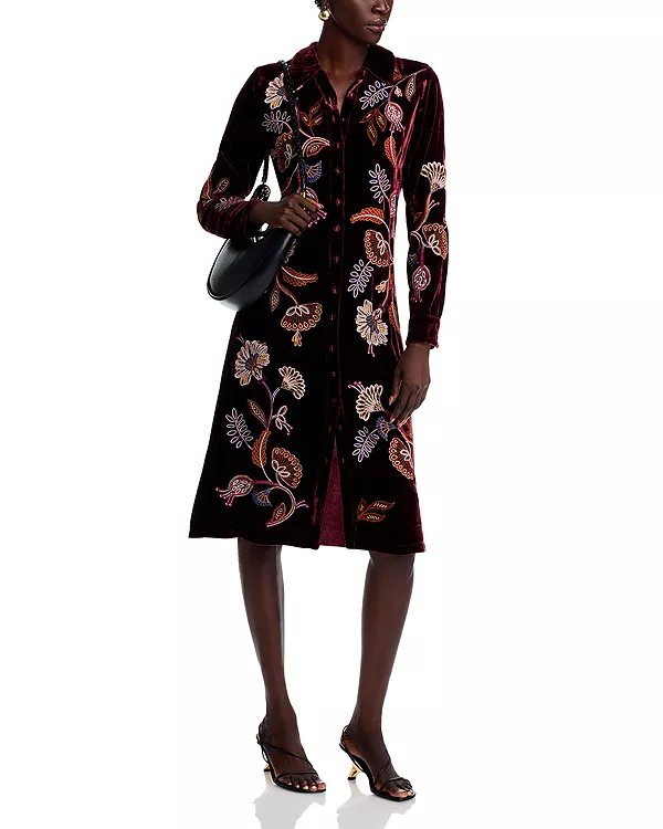 Бархатное платье-рубашка Johnny Was, фиолетовый