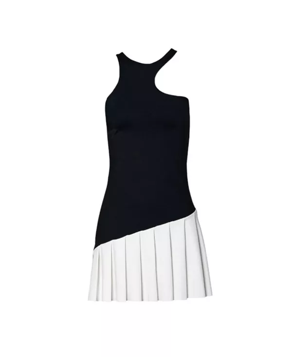 Бренд: Port De Bras Цвет: черный Платье Swan Tennis Dress выводит нашу любовь к асимметричным деталям на новый уровень: с нежной плиссированной юбкой, облегающим силуэтом и элегантным высоким воротником, это мини-платье, без сомнения, является одним из самых популярных фаворитов сезона. В комплекте с внутренними шортами и боковым карманом, оно такое же удобное и практичное, как и красивое.