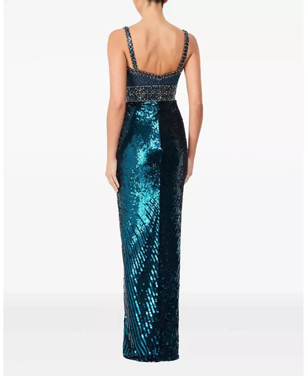 Бренд: Jenny Packham Цвет: синий Ослепите всех своим движением в этом изысканном черном платье, созданном для максимального эффекта. Украшенное сверкающими пайетками, которые переливаются на свету при каждом движении, это платье создает яркий и гламурный образ. Приталенный лиф, украшенный замысловатой вышивкой бисером, придает платью структуру и элегантность, а мягкие драпировки на талии добавляют женственности и изящества. Благодаря изящным бретелям и классическому силуэту в пол, это платье идеально подходит для вечеров, где гламур и утонченность имеют первостепенное значение.