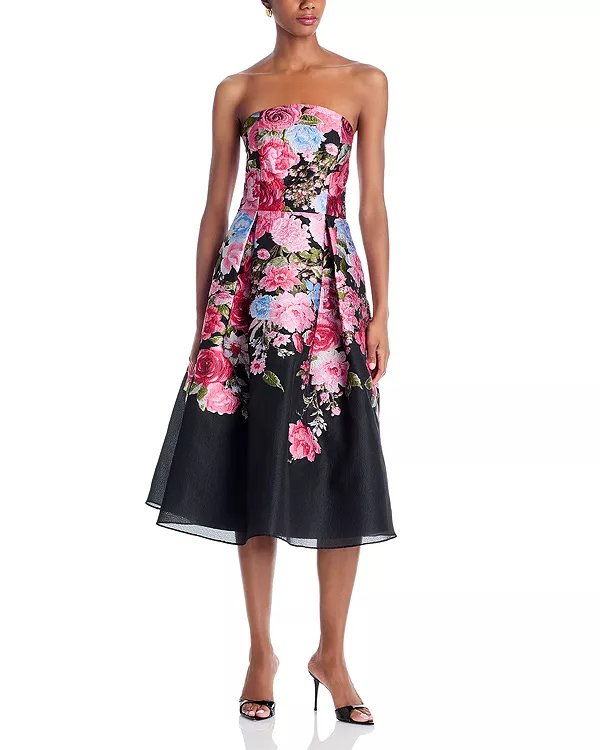 Платье без бретелей из парчи Eliza J, мультиколор 28 541₽