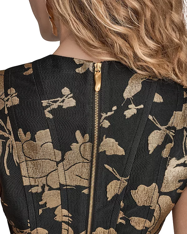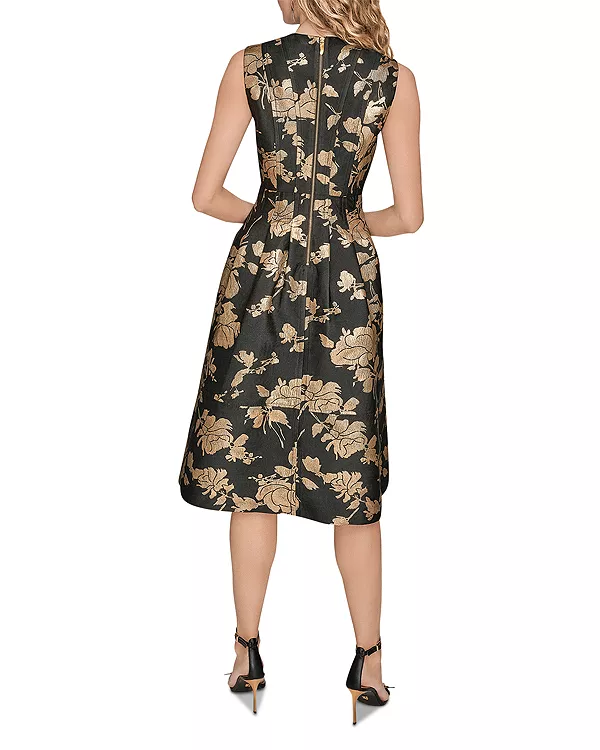 Платье миди с металлизированным жаккардом Donna Karan, мультиколор