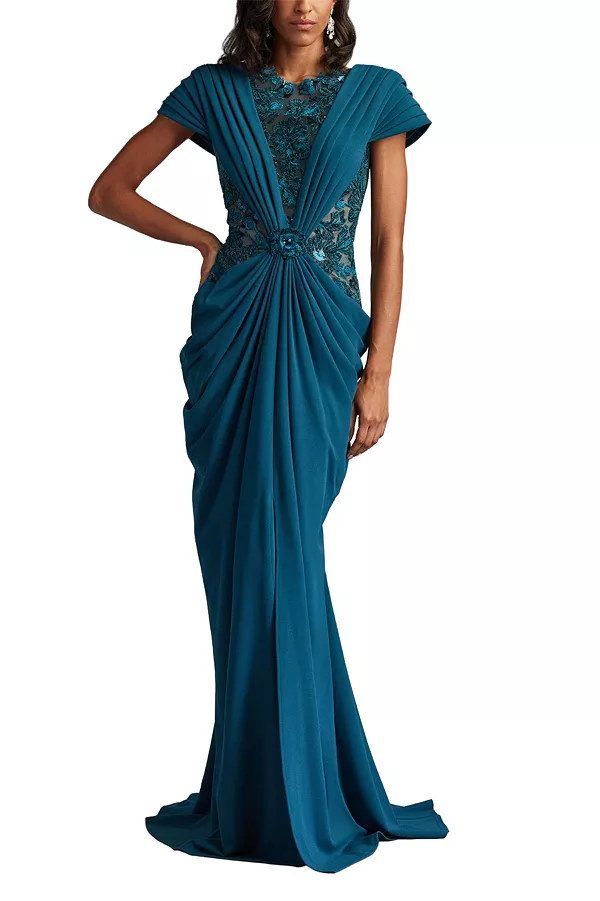 Платье Джулины с драпировкой и вышивкой Tadashi Shoji, синий