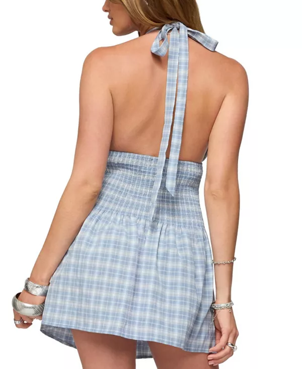 Мини-Платье в клетку с присборенной талией. Edikted, синий 8 061₽