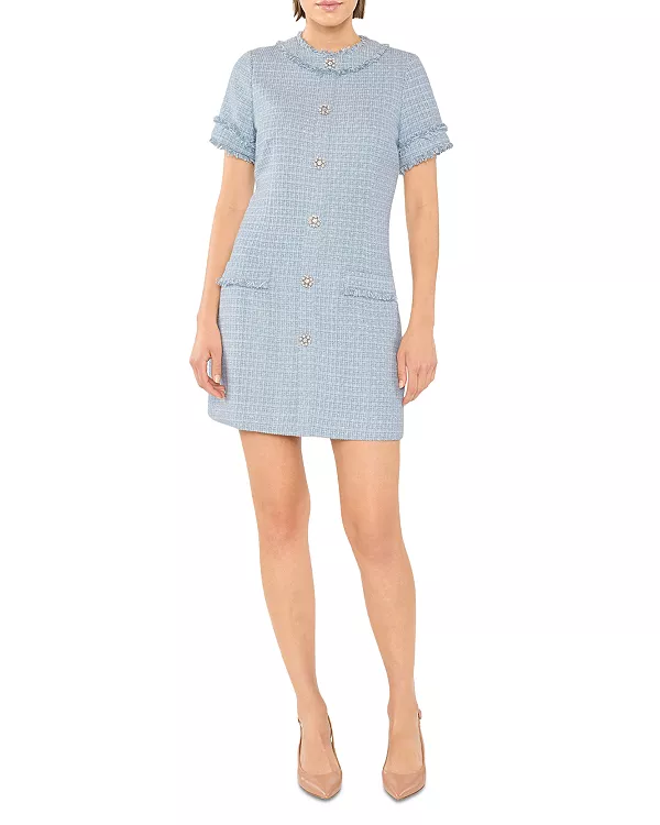 Твидовая ткань, бахрома, декоративные пуговицы спереди