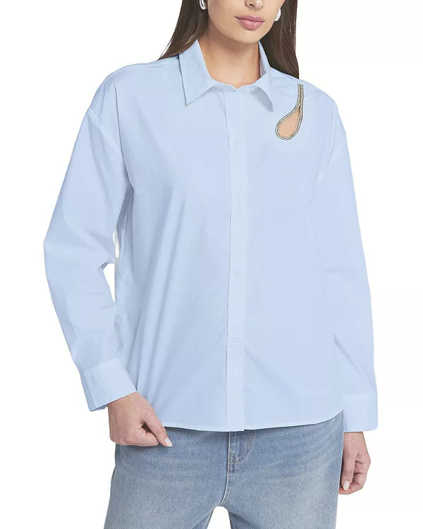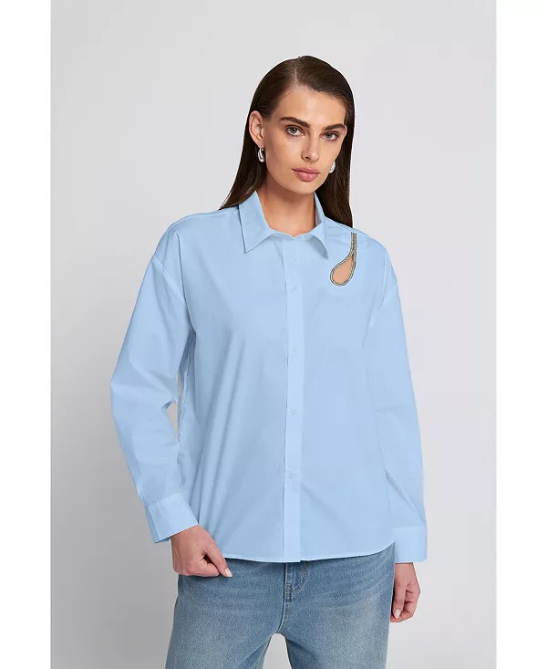 Рубашка с вырезом и отделкой из страз. Elle Collection, синий 12 797₽