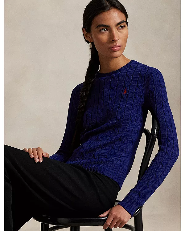 Хлопковый свитер с круглым вырезом и косами Ralph Lauren, синий 15 184₽