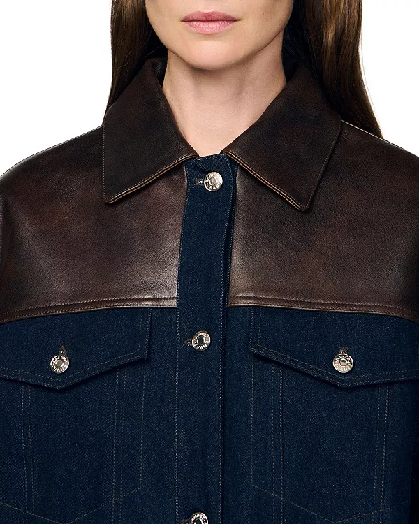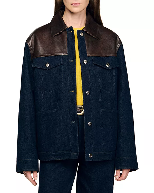 Куртка Raphael из джинсовой ткани с кожаной отделкой Sandro, синий 42 067₽