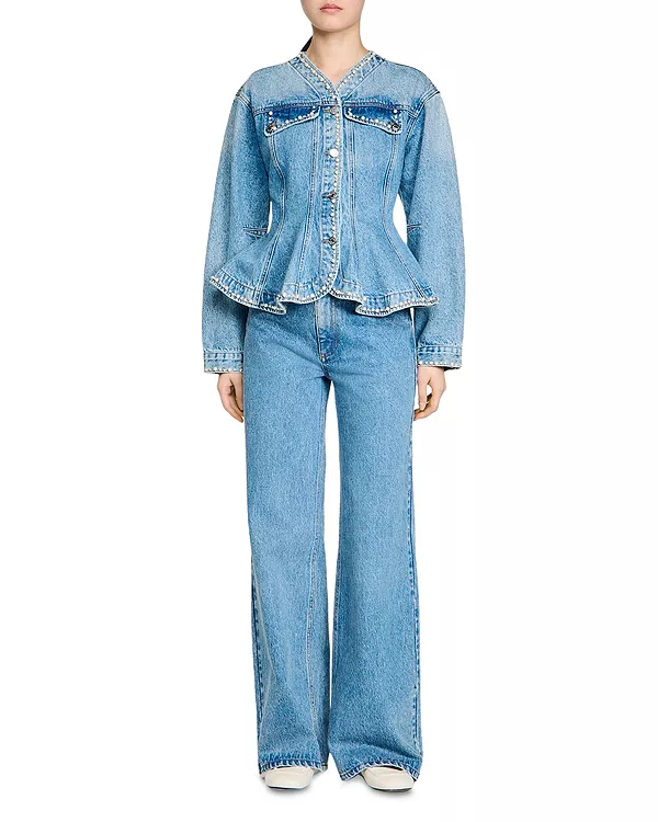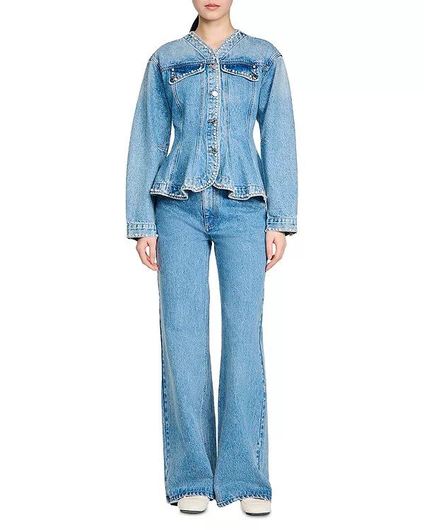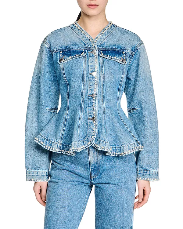 Джинсовая куртка, украшенная бисером Sandro, синий
