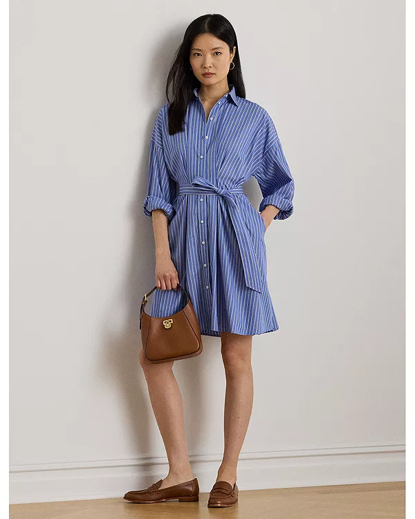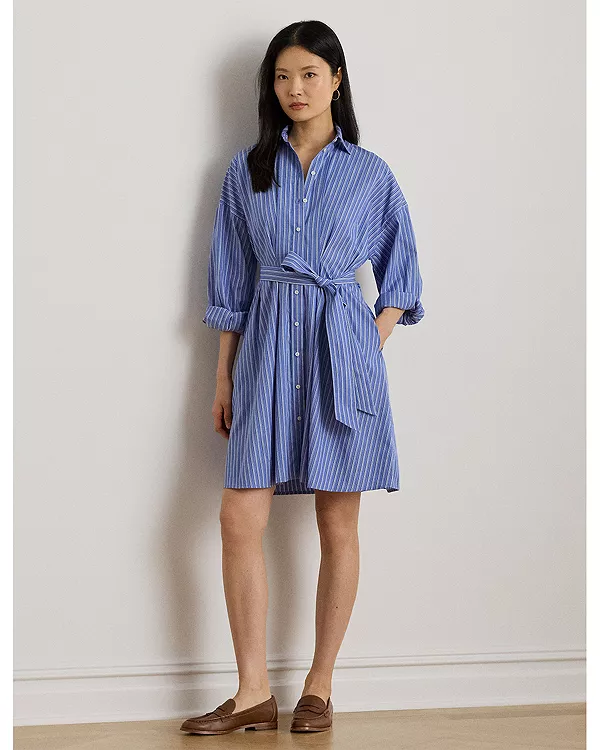 Платье-Рубашка в полоску из плотной ткани с поясом Ralph Lauren, синий