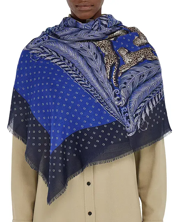 Шелковый шарф из Мадраса Ferragamo, синий 86 418₽