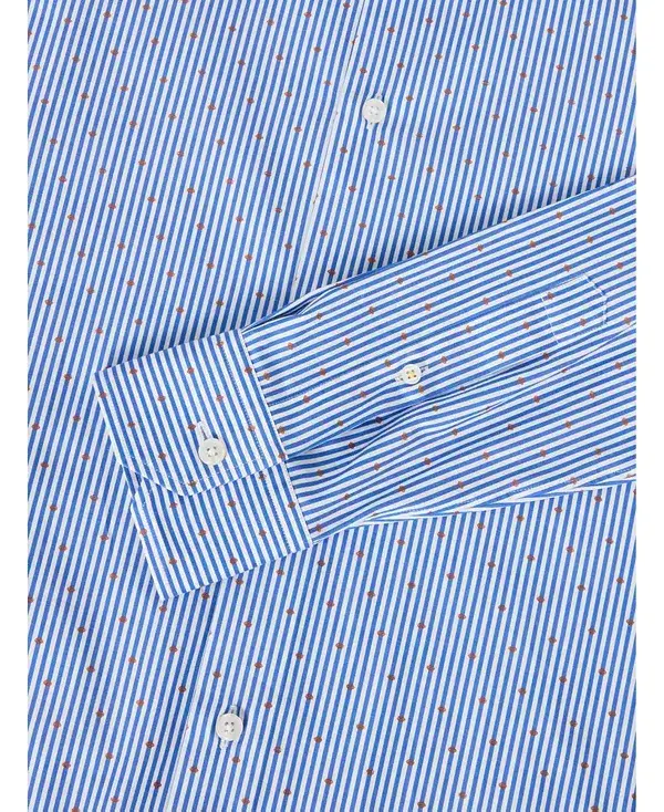 Отделка фирменными деталями Robert Talbott, включая золотую окантовку по внутренней стороне горловины, контрастную нить внизу петли для пуговицы и на планке рукава