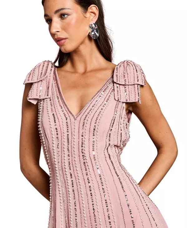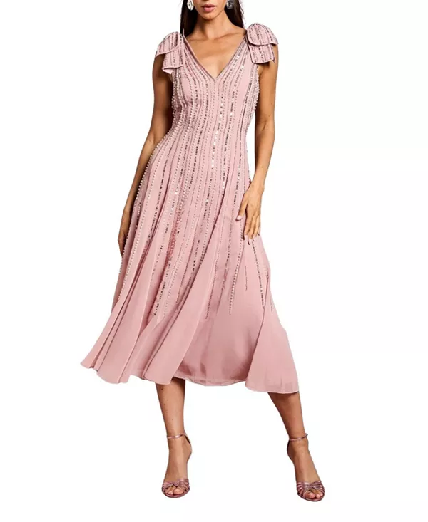 Платье миди с бантом на плечах, украшенное стразами Coast, розовый 28 105₽