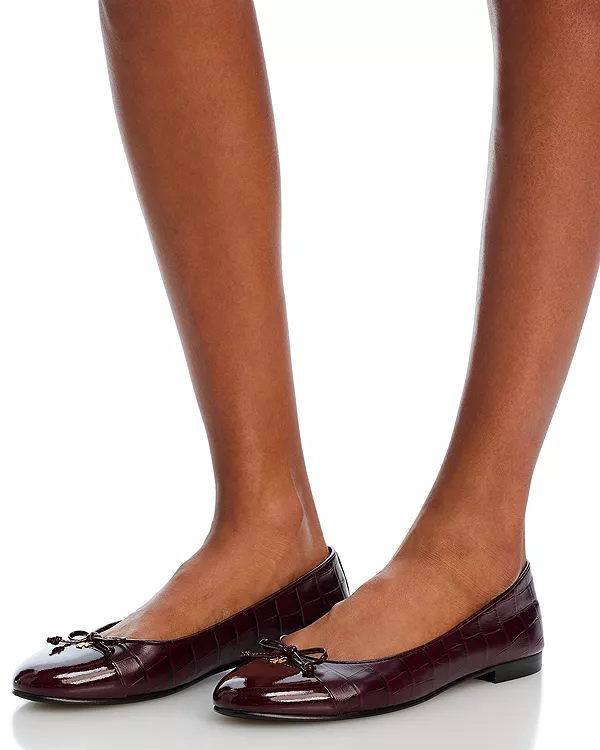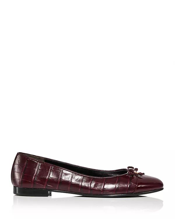 Эти классические балетки Tory Burch выполнены из кожи с тиснением под крокодила и имеют контрастный мысок. Элегантный дизайн дополнен изящным бантиком и подвеской в виде буквы «Т».