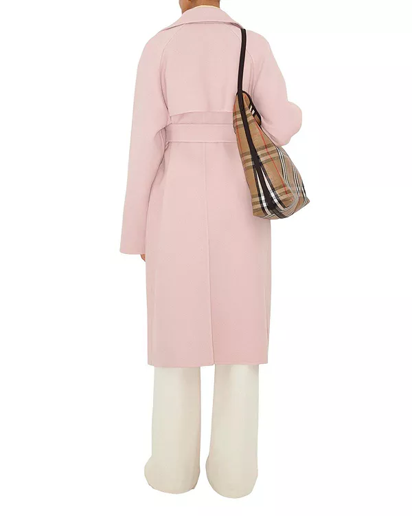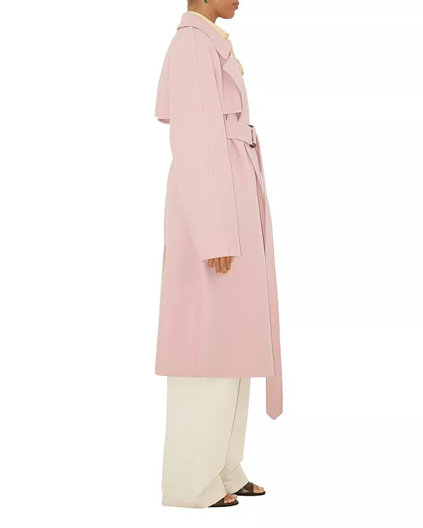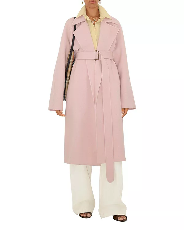 Пальто-халат, изготовленное в Италии из двухстороннего кашемира, с откидной планкой и защитой от непогоды, вдохновленными фирменным тренчем Burberry. Модель имеет свободный крой, рукава реглан и пояс для регулировки силуэта.