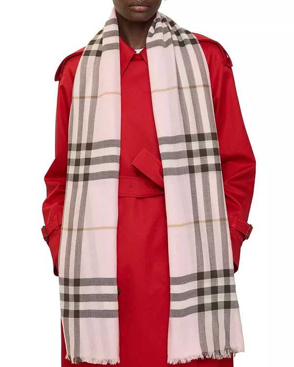 Широкий клетчатый шерстяной шарф Burberry, розовый