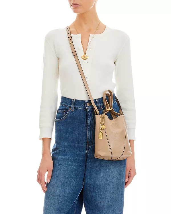 Небольшая кожаная сумка-шоппер Chloé, бежевый