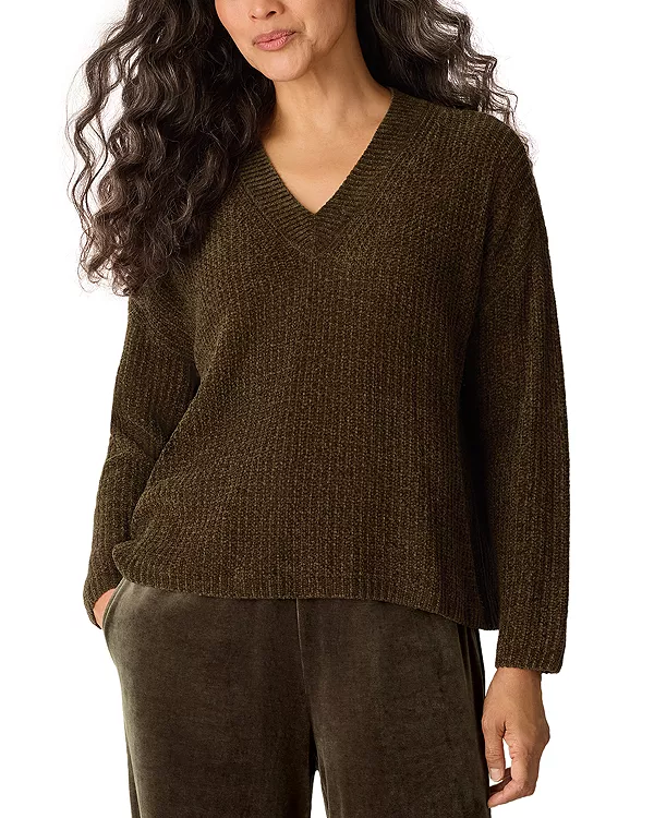 Свитер с V-образным вырезом Eileen Fisher, коричневый