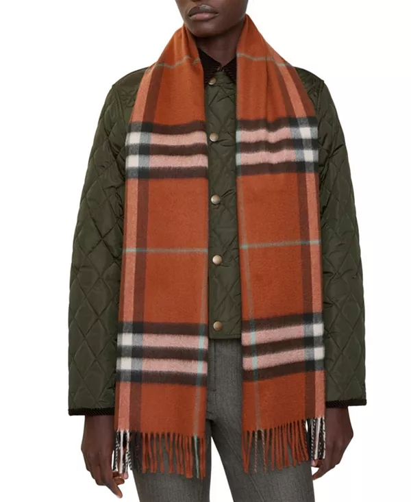 Бренд: Burberry Цвет: красный Знаменитый кашемировый шарф Burberry Check, изготовленный в Шотландии на фабрике, основанной в 1797 году. Изготовленный на традиционных ткацких станках, шарф проходит более 30 этапов. Ткань промывается в местной родниковой воде и обрабатывается ворсянкой - сушеными цветами, которые протягиваются по поверхности кашемира, чтобы «поднять» ткань, создавая естественный блеск и ультрамягкую текстуру.