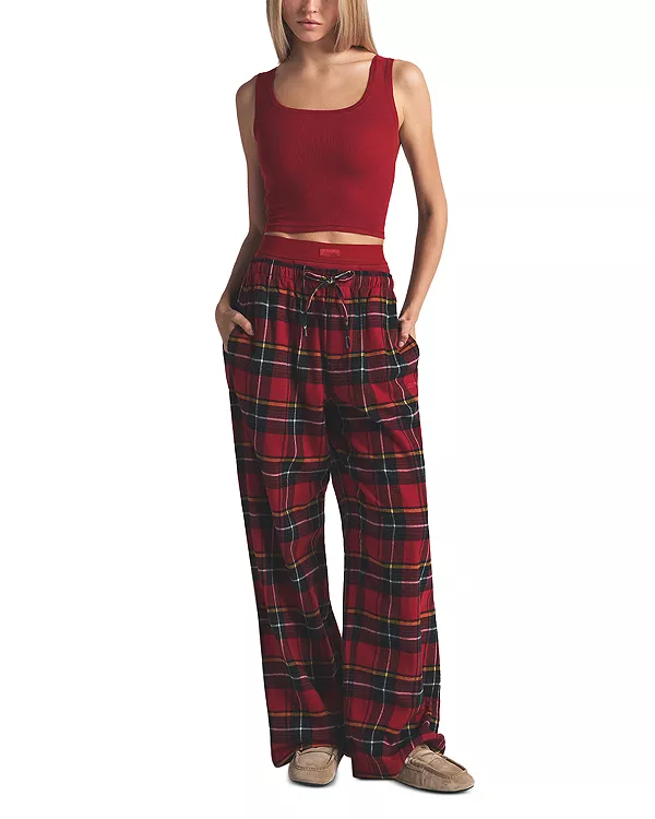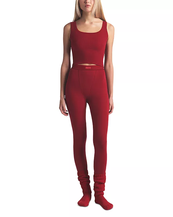Топ из хлопка в рубчик Skims, красный