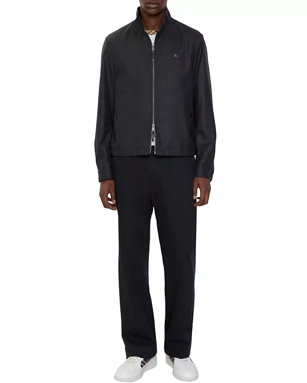 Бренд: Burberry Цвет: серый Куртка-харрингтон из шерстяной фланели, прямого кроя, с подкладкой в клетку в тон и воротником-стойкой на пуговицах. Модель дополнена кожаными застежками-молниями и фирменной нашивкой с изображением рыцаря - архивным мотивом, впервые появившимся на сумках Burberry в 1980-х годах. Форма регулируется внутренним шнурком.