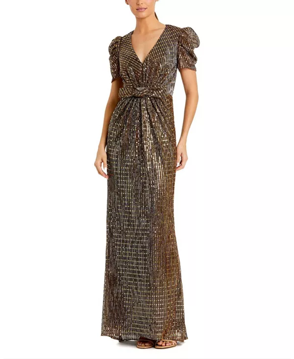 Платье с бантом на талии, металлизированное Mac Duggal, золотой
