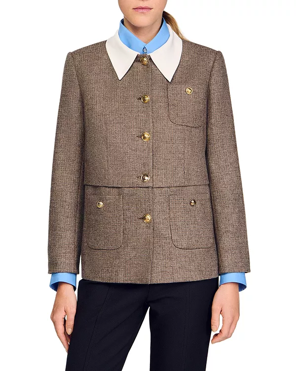 Пиджак в клетку «гусиная лапка» Sandro, коричневый 66 945₽