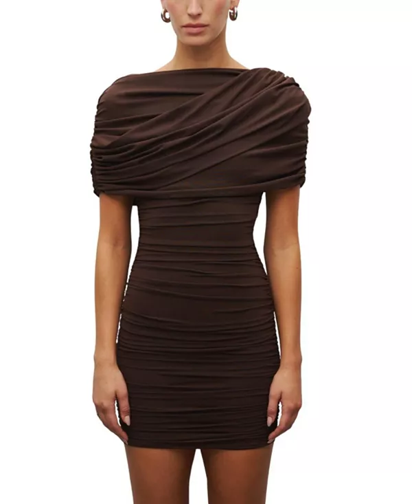 Мини-Платье с драпированными плечами Heiress Beverly Hills, коричневый