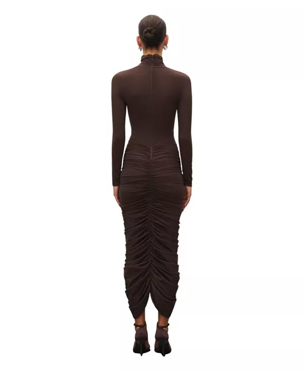Бренд: Heiress Beverly Hills Цвет: коричневый Это платье с длинными рукавами, сшитое из фирменной двухслойной эластичной сетки Heiress, моделирует фигуру с помощью точной инженерной обработки. Сборки в V-образной форме подчеркивают талию, создавая скульптурную фигуру «песочные часы». Создано для того, чтобы поддерживать, моделировать и выгодно подчеркивать фигуру со всех сторон.
