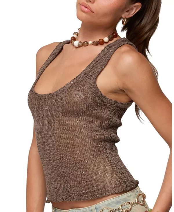 Вязаный топ с пайетками Eleora Edikted, коричневый