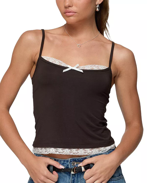 Топ Adriel с контрастным кружевом Edikted, коричневый