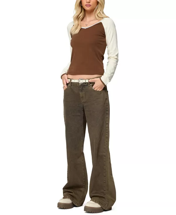 Контрастный топ-реглан Ronie Edikted, коричневый