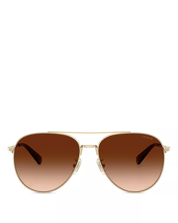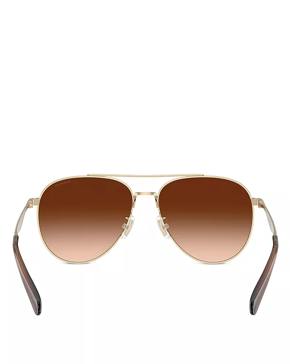 Солнцезащитные очки-авиаторы, 57 мм Coach, коричневый