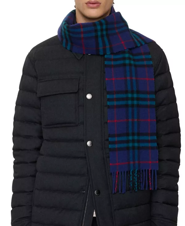 Бренд: Burberry Цвет: синий Знаменитый кашемировый шарф Burberry Check, изготовленный в Шотландии на фабрике, основанной в 1797 году. Изготовленный на традиционных ткацких станках, шарф проходит более 30 этапов. Ткань промывается в местной родниковой воде и обрабатывается ворсянкой - сушеными цветами, которые протягиваются по поверхности кашемира, чтобы «поднять» ткань, создавая естественный блеск и ультрамягкую текстуру.