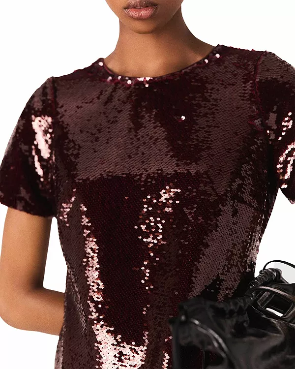 Бренд: Maje Цвет: красный В новом сезоне Maje создала смелые силуэты с изысканными деталями, переосмыслив нестареющую классику с дерзким акцентом. Это короткое платье, полностью расшитое пайетками, идеально подойдет для праздничного вечера. Его легко дополнить аксессуарами: сочетайте его с более повседневными вещами, такими как балетки и большая сумка, чтобы поиграть с контрастами.