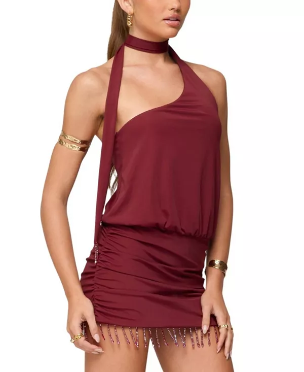 Мини-Платье Данит на одно плечо с бахромой Edikted, красный 9 799₽