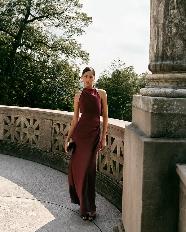 Платье с драпировкой и бретелями через шею - эксклюзив Aqua, красный 26 168₽