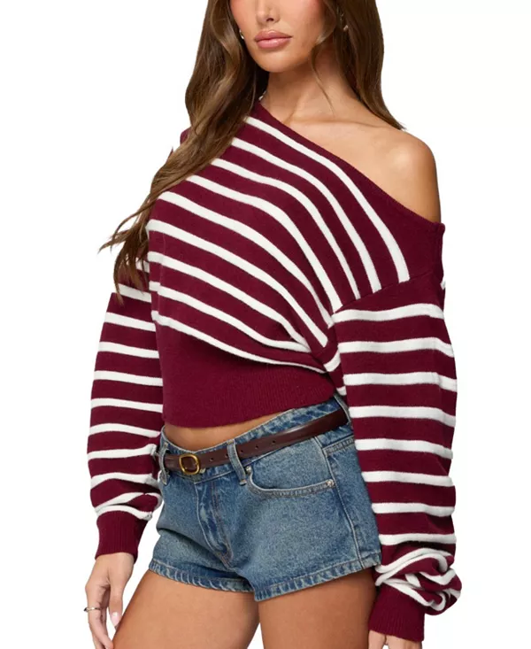 Свитер оверсайз «Мика» с открытыми плечами Edikted, красный