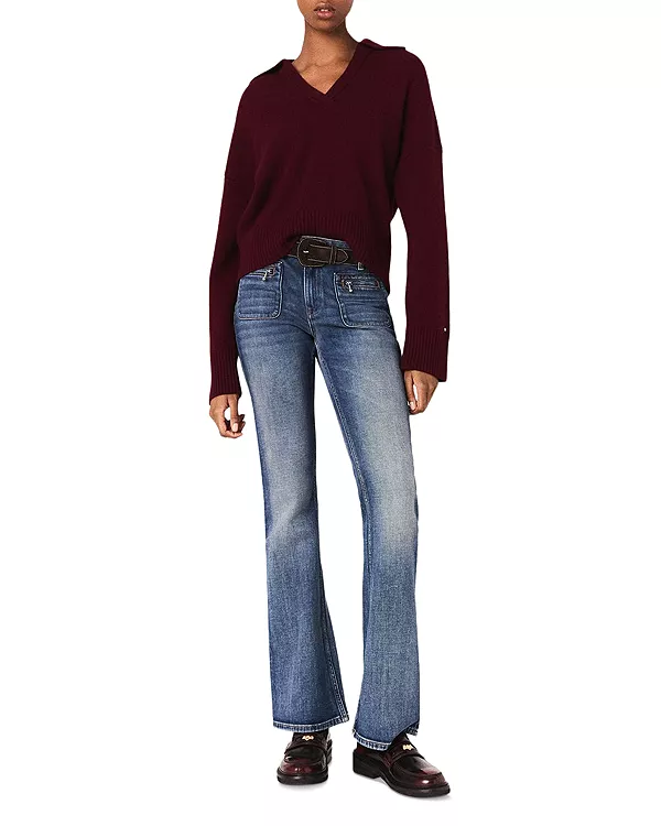 Параметры модели: рост 178 см, обхват груди 84 см, обхват талии 66 см, обхват бедер 89 см, на ней размер Maje 1 или 36