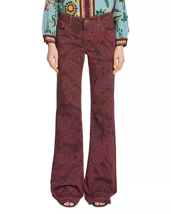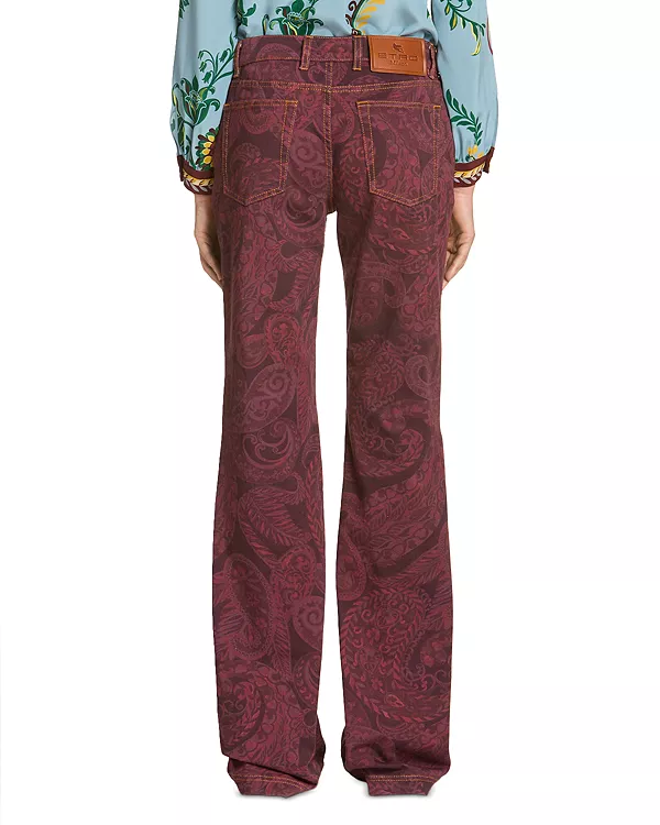 Джинсы-Клеш с бордовым принтом Etro, красный