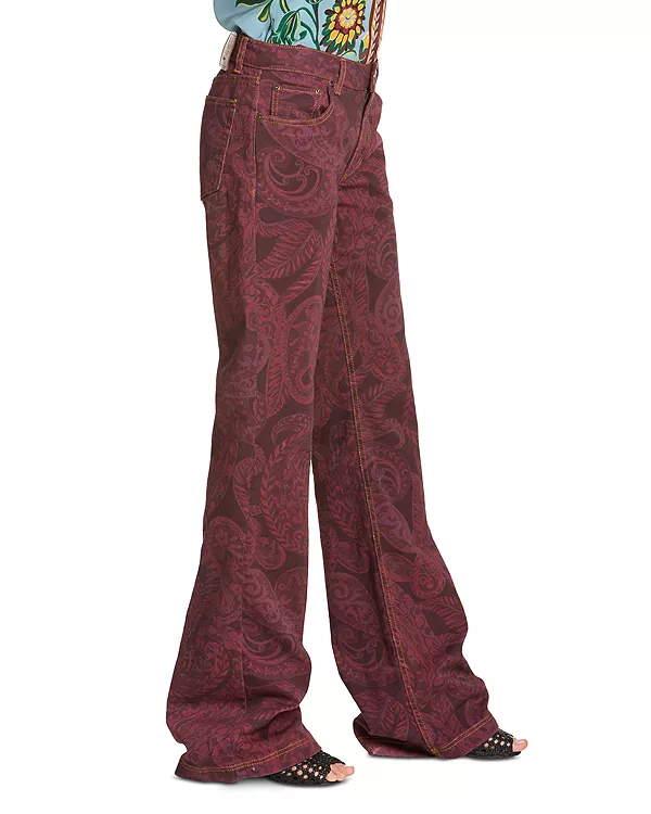Джинсы-Клеш с бордовым принтом Etro, красный 50 101₽
