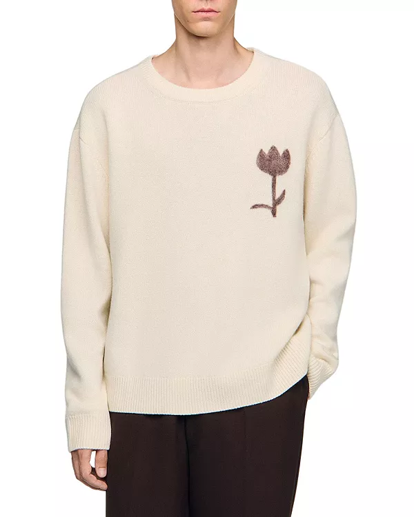 Свитер из шерсти с цветочным декором Sandro, белый 41 095₽