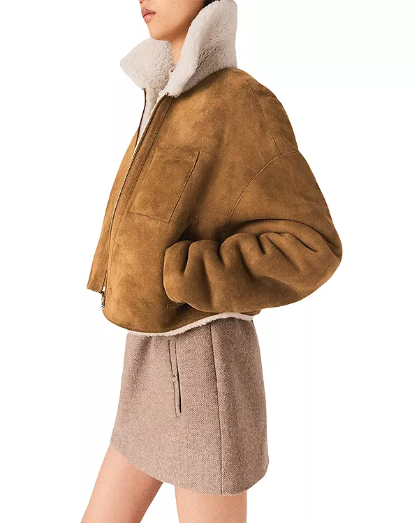Двусторонняя куртка из овчины Maje, бежевый 146 079₽