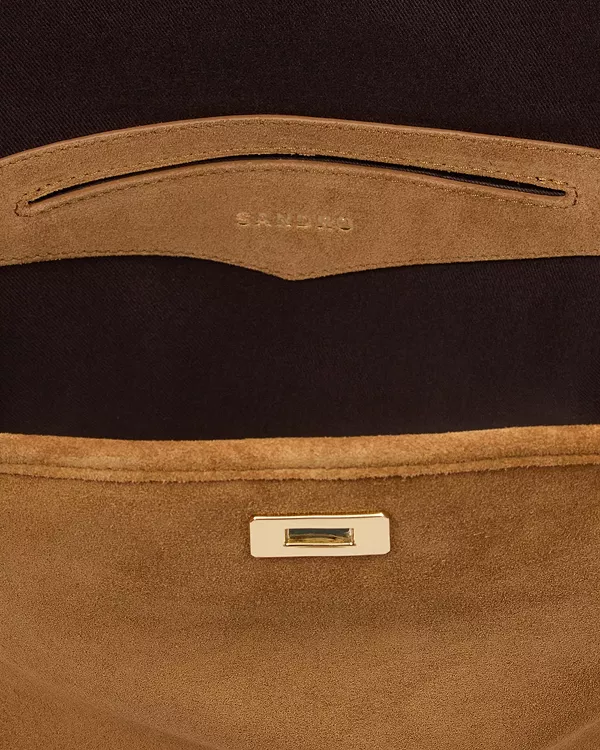 Сумка-Ведро из замши с бахромой Sandro, бежевый