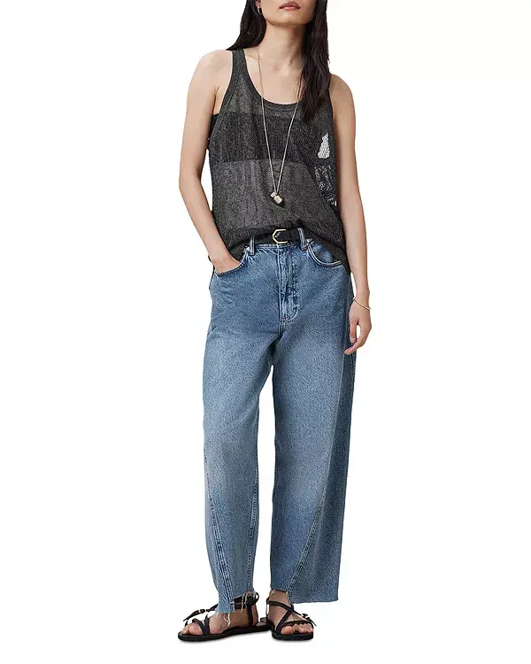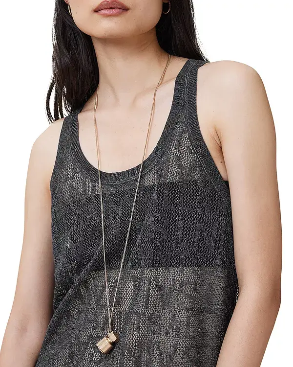 Особенности: Круглый вырез Без рукавов Модель пуловера Вязание ажурной вязкой с блестящим жаккардовым узором AllSaints по всей поверхности Импортный товар