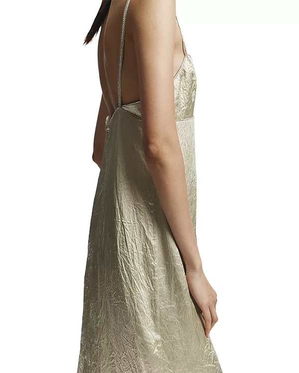 Отделка стразами на вырезе, талии и бретелях